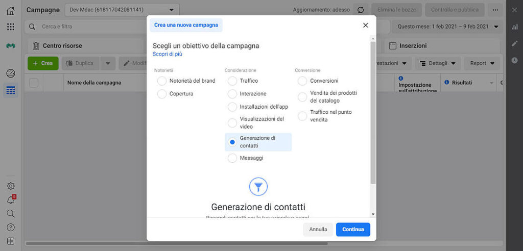 - Impostare correttamente una campagna ‘Generazione di contatti’ su Facebook