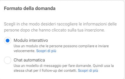 A ogni modo, dopo aver inserito tutte le informazioni, procedi nella sezione Formato della domanda e seleziona Modulo interattivo.